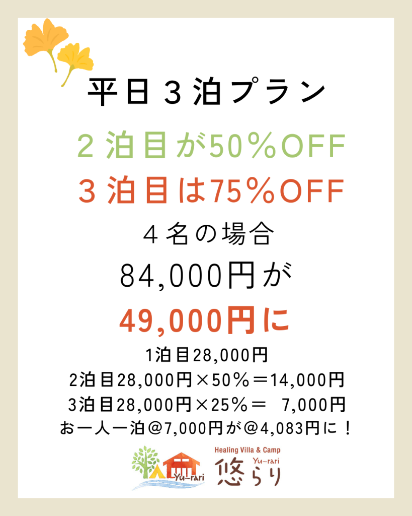 3泊4日なら 84,000円が、49,000円と25,000円もお得🉐