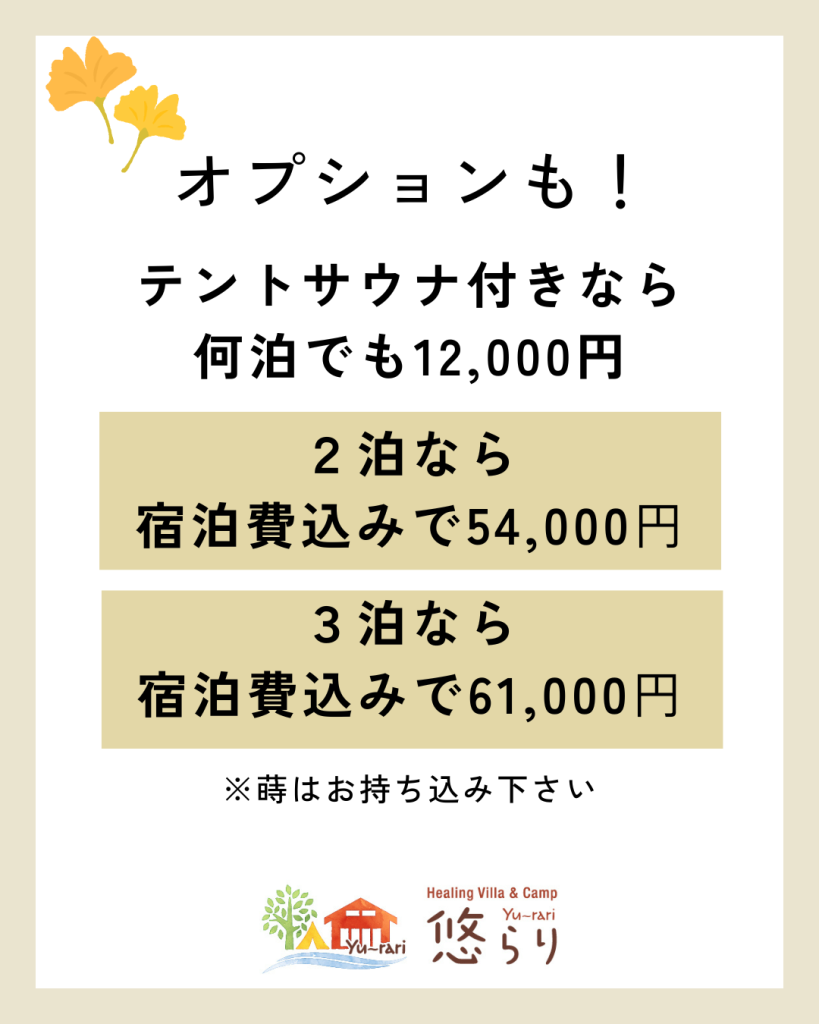 更に、テントサウナは何泊でも12,000円でご利用できます😊